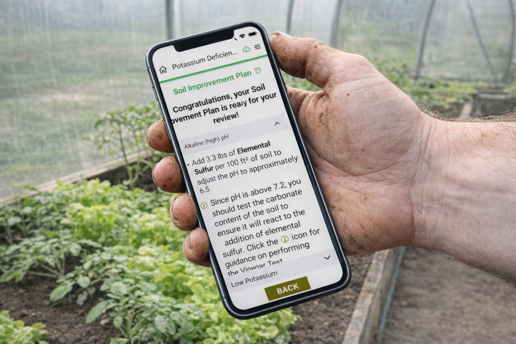 That’s where we come in! Our approach is provide information and tools so that you can perform simple tests to better understand your soil and know specifically how to improve it. Our Read Your Soil app guides you through a number of tests, including soil quality tests, irrigation water tests, and observing and interpreting crop deficiency symptoms that you can select and perform. Then, you can enter your results, and when you are done, the app will create a custom organic fertilizer recommendation listing specific organic inputs and application rates to improve your specific soil. Once you create a free account (we do not use your information), the app works offline so you can use it in the field. The Read Your Soil app includes a large number of nutrient deficiency symptom images for a wide variety of common crops, so often you don’t need to plant specific crops but can simply observe the crops you are already growing to learn more about your soil.